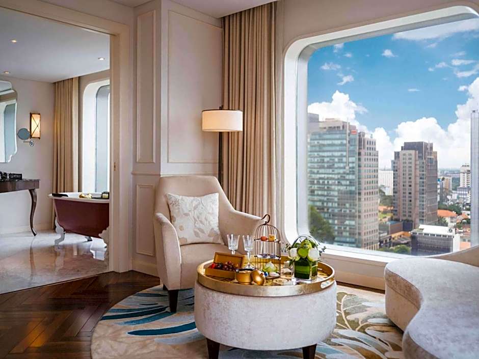 Showcasing a chic, modern Indochine design, this 60m2 suite features natural wooden flooring and exquisite furnishings designed by Vietnamese artisans. Enjoy breathtaking city views through the large floor-to-ceiling windows. The elegant private bathroom is equipped with a rain shower and a bathtub alongside our signature amenities. A Dyson hairdryer and a steamer are also provided. Nonsmoking room.